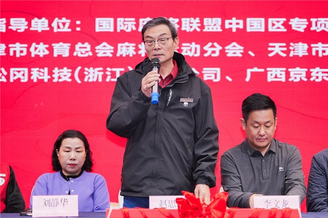 国际麻将联盟秘书长李文龙先生发表讲话,希望各地组织者和广大牌手们及时把握赛事动向和发展趋势,共同推动国标麻将运动不断发展壮大。
