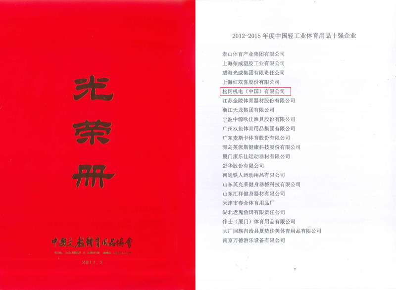 2012年8月,公司获得中国轻工业联合会颁发的“2011年度中国轻工业行业十强企业”荣誉称号,喜获体育用品行业十强荣誉。杭州市企业技术中心