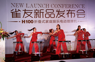 2013年8月6日浙江临安、8月8日广西桂林两地,雀友隆重举行了名为"创享娱乐家庭生活之美"的首款家电化运用之作——H100上市发布会!H100这一真正以家庭市场消费者为设计原点,行业首款家电化运用新品,赚足了来自天南地北雀友400多名经销商的眼球,博得了满堂喝彩。