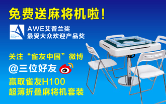 #免费送麻将机啦!#作为全球首款娱乐家电化产品,雀友 H100凭借极简折叠的经典设计、仅占地0.3㎡的人性化设置一举斩获2014AWE艾普兰最受大众欢迎产品奖。在2014年4月1日至15日活动期间转发并评论此微博,关注@雀友中国 并@三位好友您就有机会免费赢取原价5356元的雀友H100超薄折叠麻将机套装。